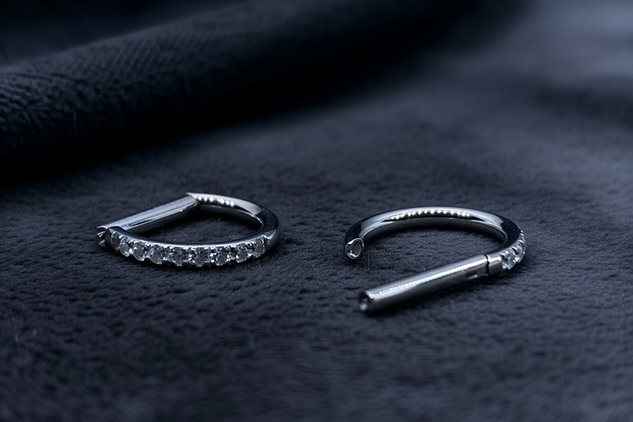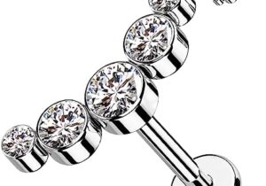 D ring de titanio grado implante con múltiples zirconias, diseñado para ofrecer un brillo intenso y una presencia elegante en la perforación.